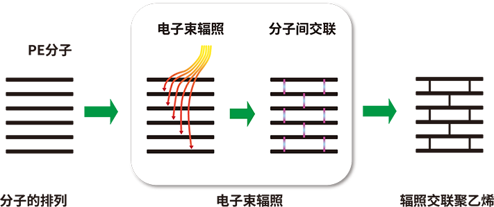 在聚乙烯樹脂改性的技術(shù)研發(fā)中,潤陽科技摒棄了傳統(tǒng)生產(chǎn)商使用化學(xué)交聯(lián)的方式,而是運用潤陽科技獨特的電子交聯(lián)技術(shù),利用電子加速器產(chǎn)生的高能電子束來改變合成樹脂分子結(jié)構(gòu),使其形成緊密立體網(wǎng)狀結(jié)構(gòu),然后再通過高溫發(fā)泡至不同倍數(shù),制成環(huán)保閉孔發(fā)泡材料。相較于化學(xué)加工,以物理交聯(lián)技術(shù)所生產(chǎn)的發(fā)泡材料顯然更具備穩(wěn)定的環(huán)保安全性,同時也更具回收再制造的循環(huán)價值。
